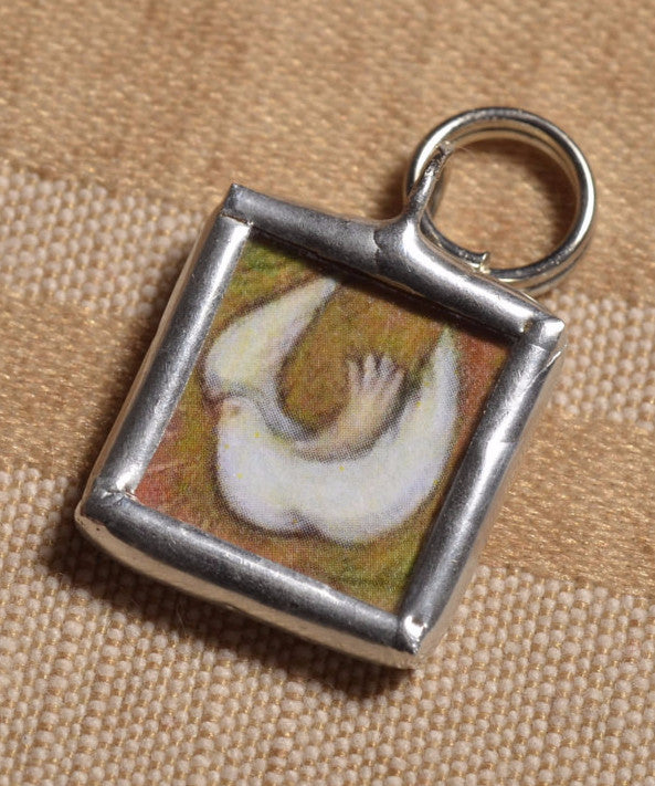 A lovely pendant for Confirmation or any other special religious occasion. It has the same image on both sides. Sue painted the original for this image in acrylics and colored pencil, and called it "Spirit of Peace, Joy, and Love."