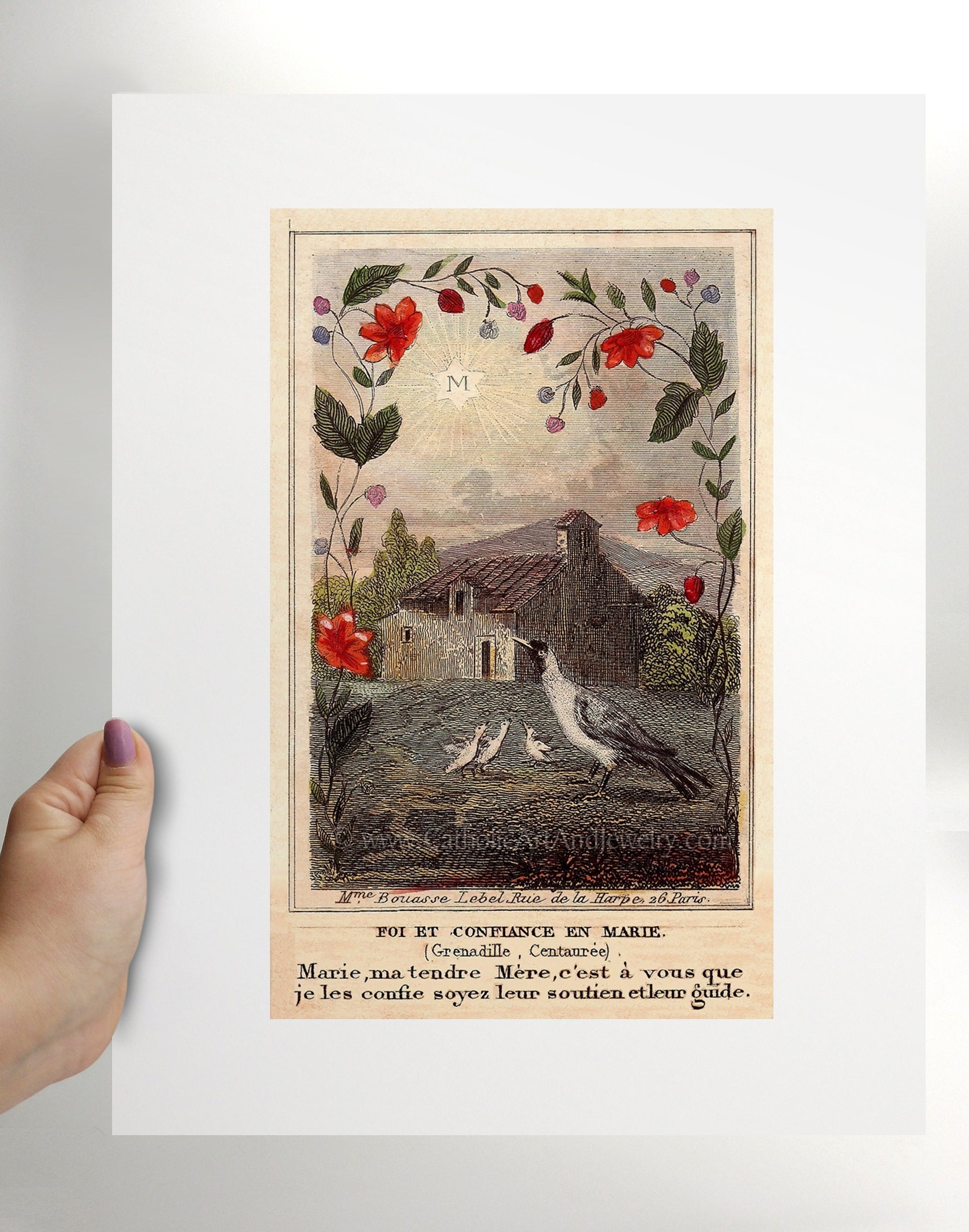 Faith and Confidence in Mary – based on a Vintage French Holy Card – Catholic Art Print