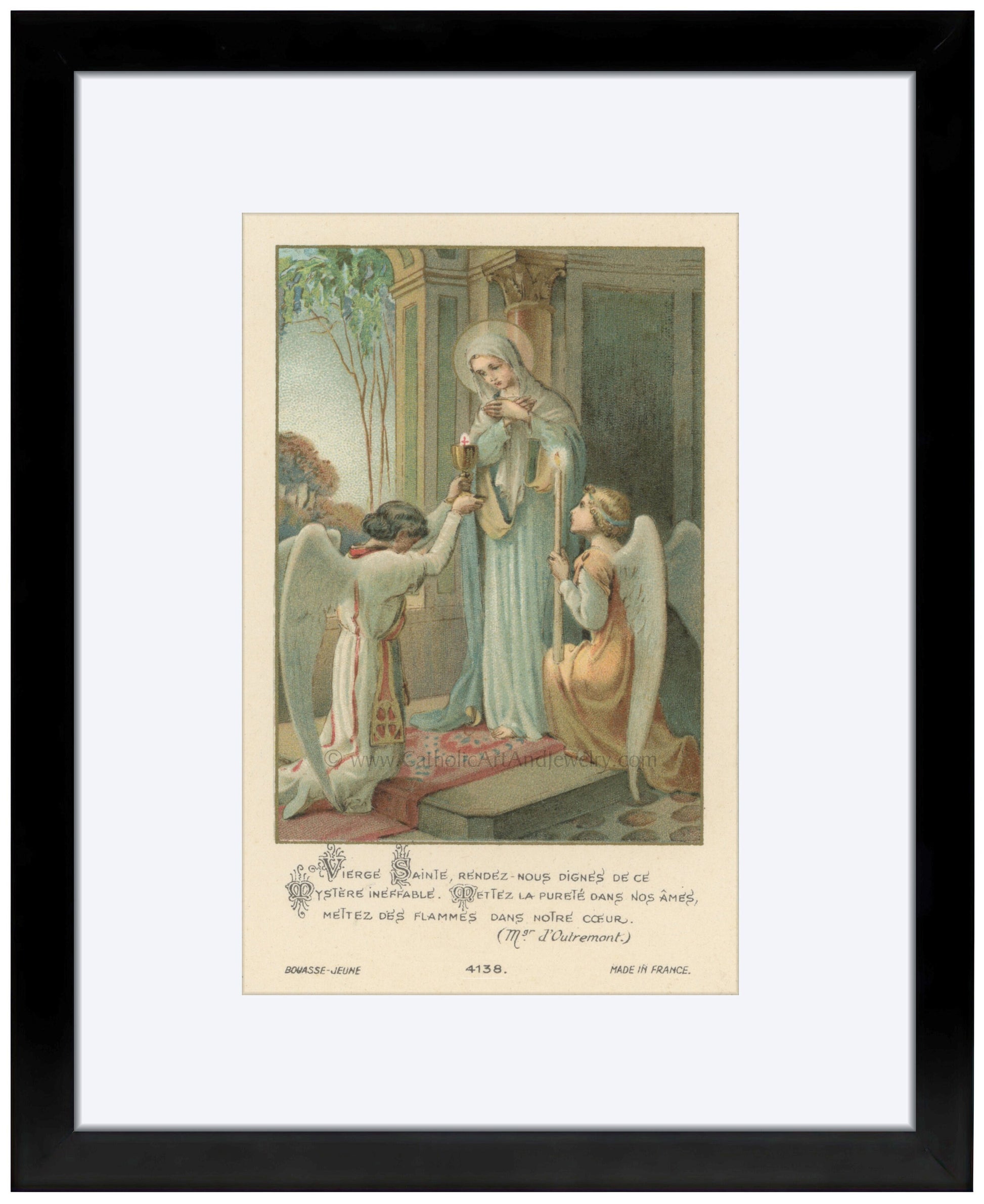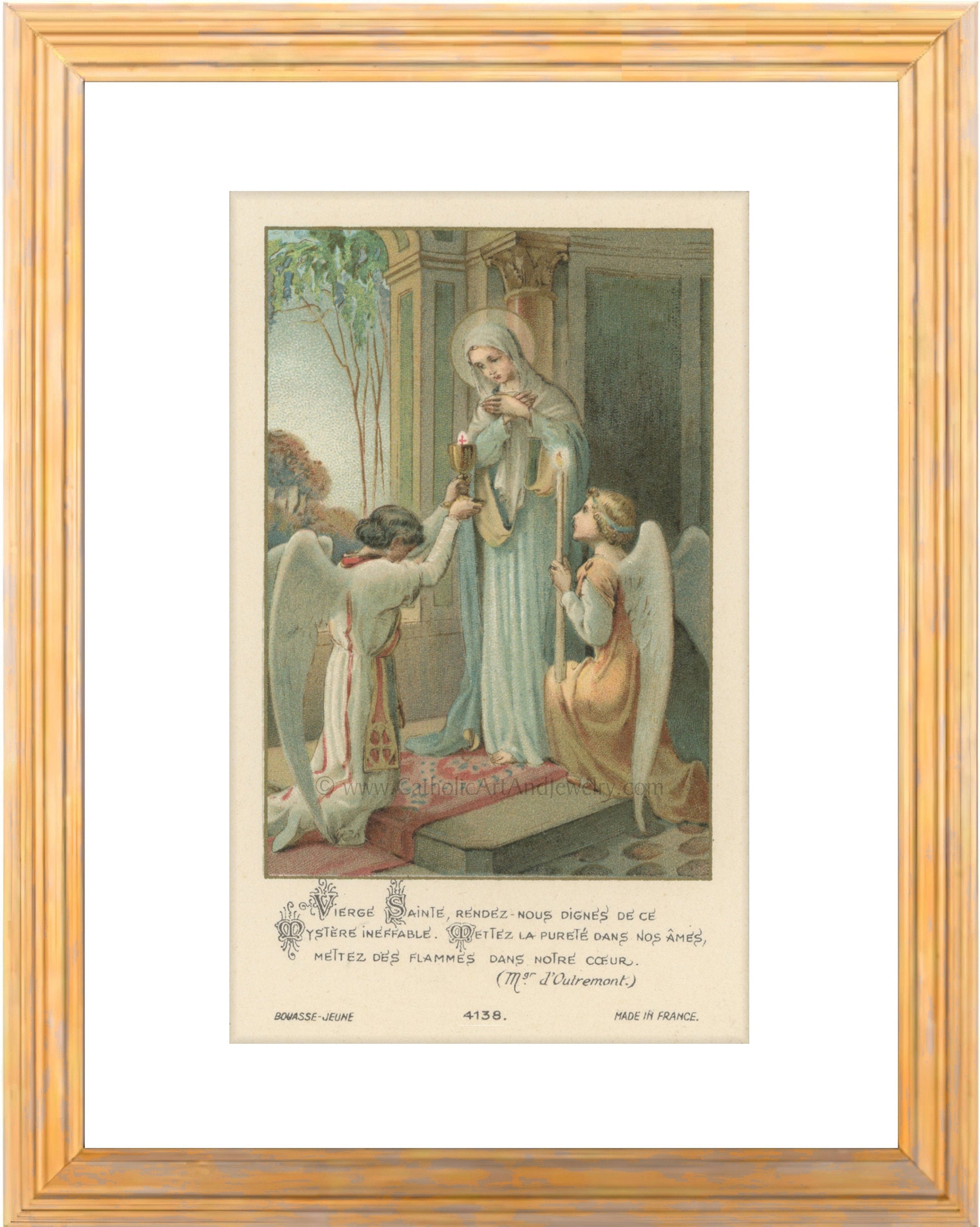 Mary Receiving Communion – based on a Vintage French Holy Card – Catholic Art Print – Unique Catholic Gift