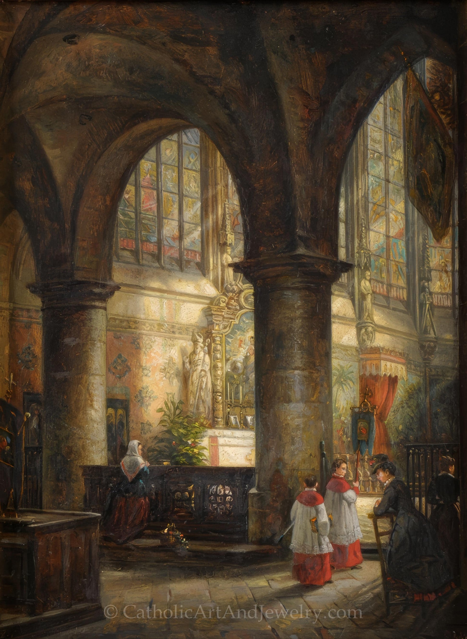New! Church Interior – In the Choir of Aachen Cathedral – by Franz Stegmann – Beautiful Catholic Art – Archival Quality