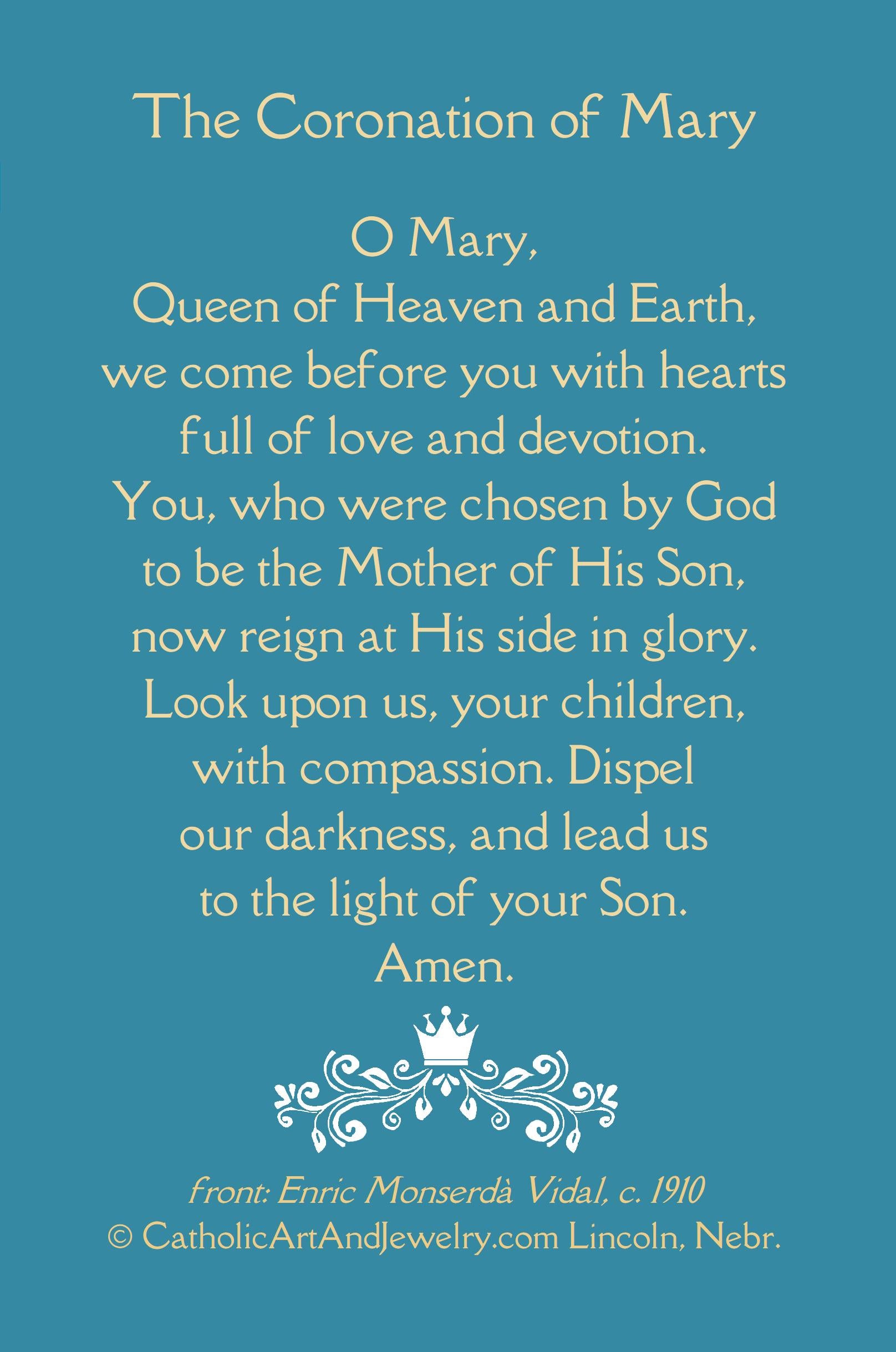 New! Crowning of Mary Holy Card – Prayer to the Queen of Heaven – Enric Vidal – pack of 10/100/1000 – Madonna and Child