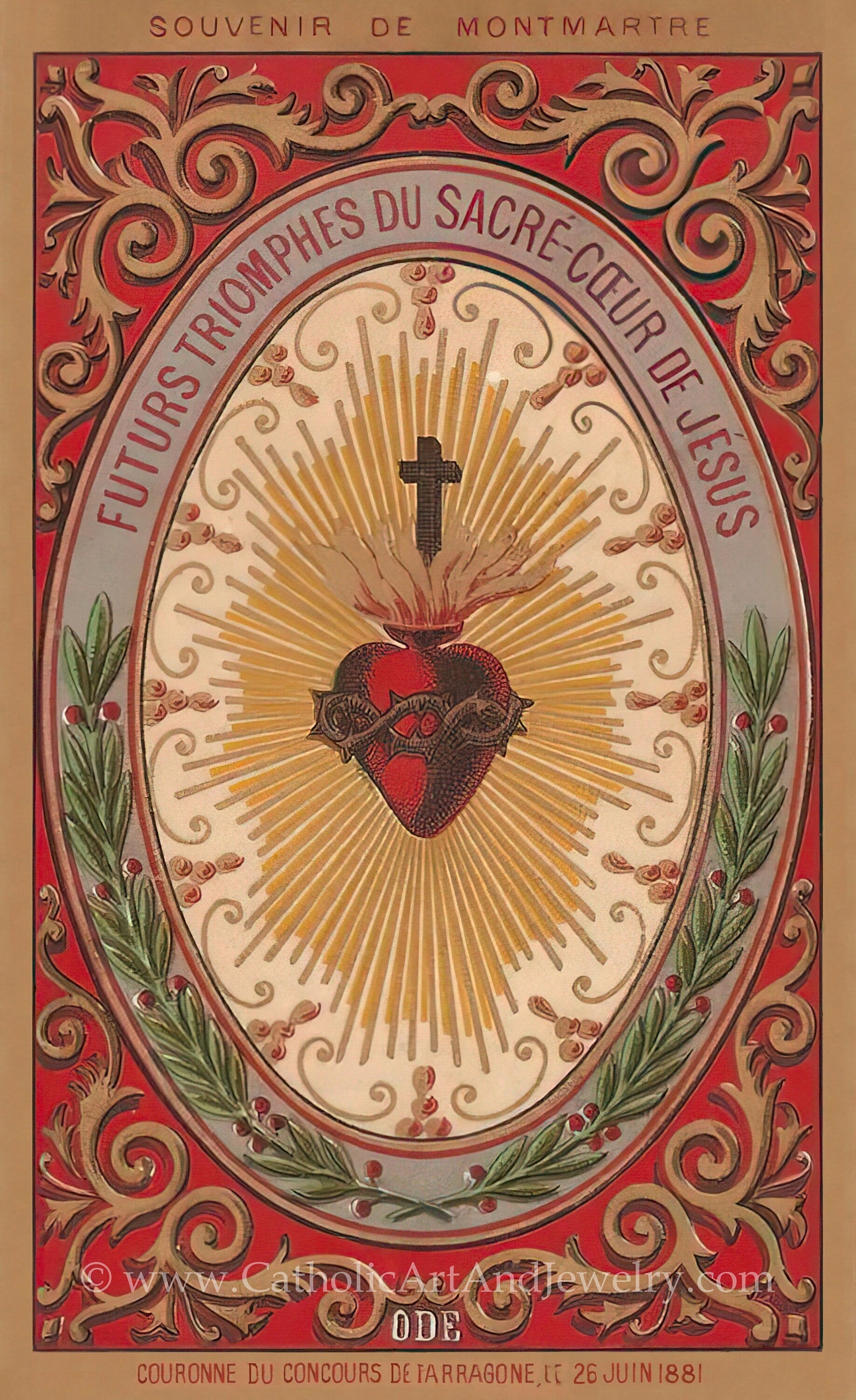 Future Triumphs of the Sacred Heart – Sacre Coeur Basilica – Restored Vintage Holy Card – pack of 10/100/1000