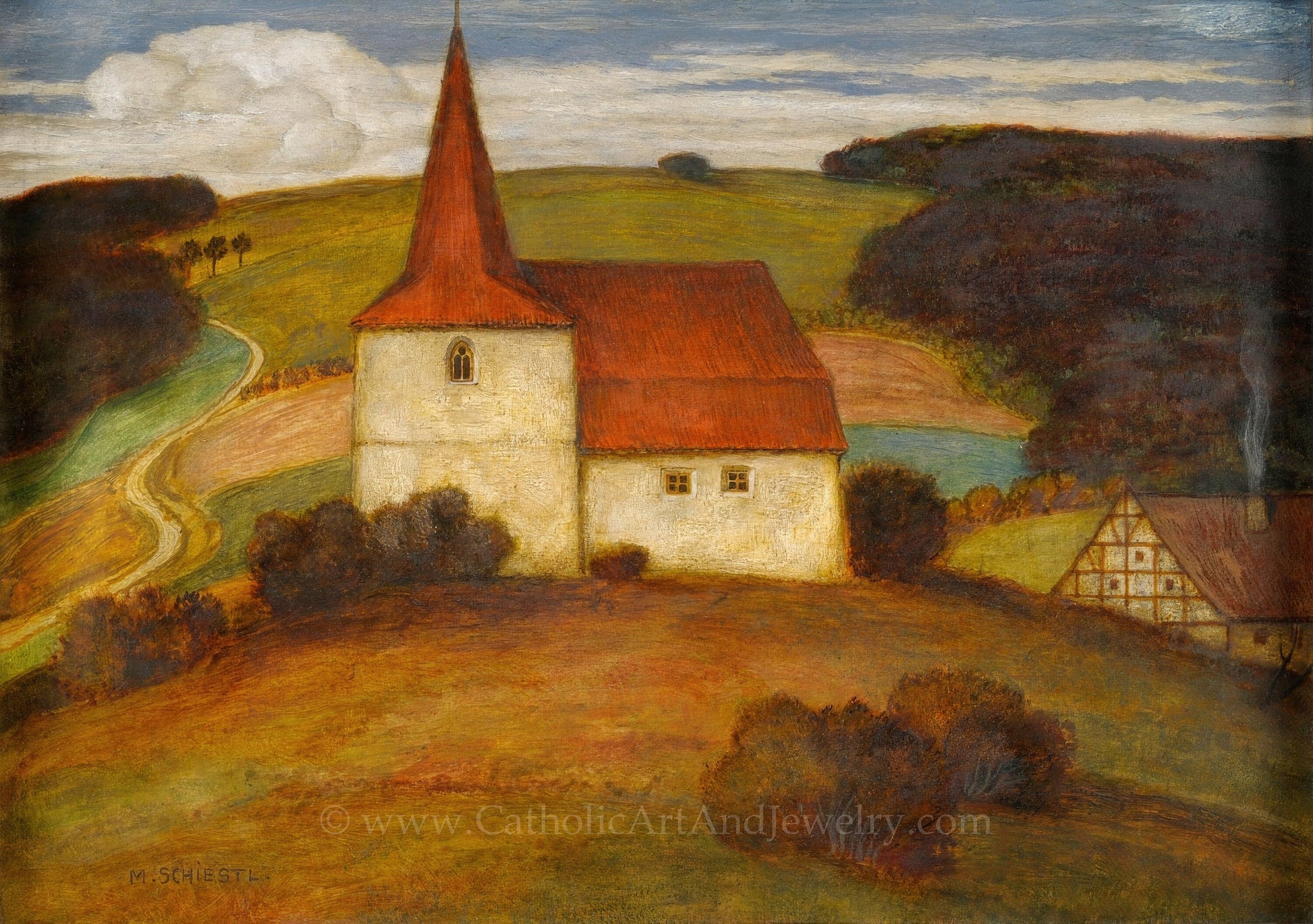 Landscape with Church – Matthäus Schiestl – Catholic Art Print – Archival Quality