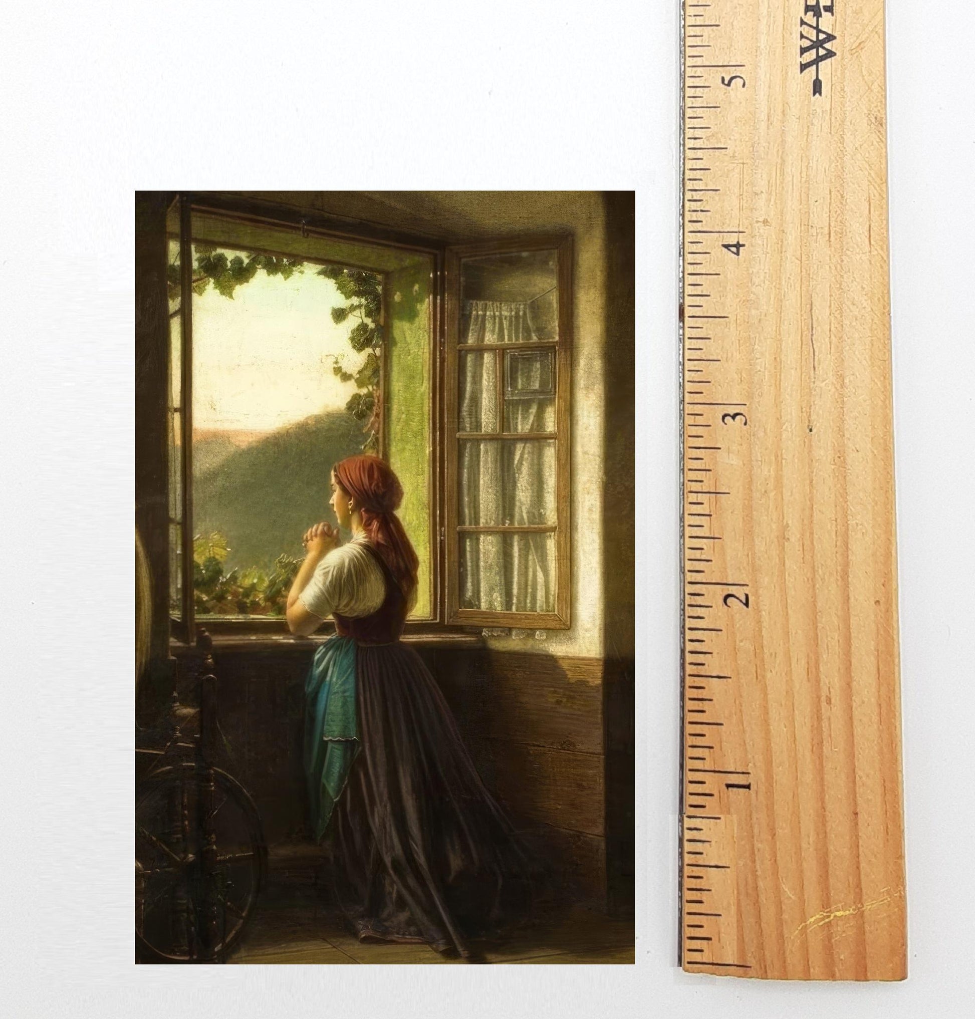 The picture is by Antonin Dvorak (no relation to the composer) from 1869. We offer it separately as a beautiful Catholic fine art print elsewhere in our shop. We love this image of a woman starting her day in the early morning, praying to God. We're blessed to have found St. Mechtilde's revelations from Jesus on morning offerings, and to be given the ability to combine them in this one card.