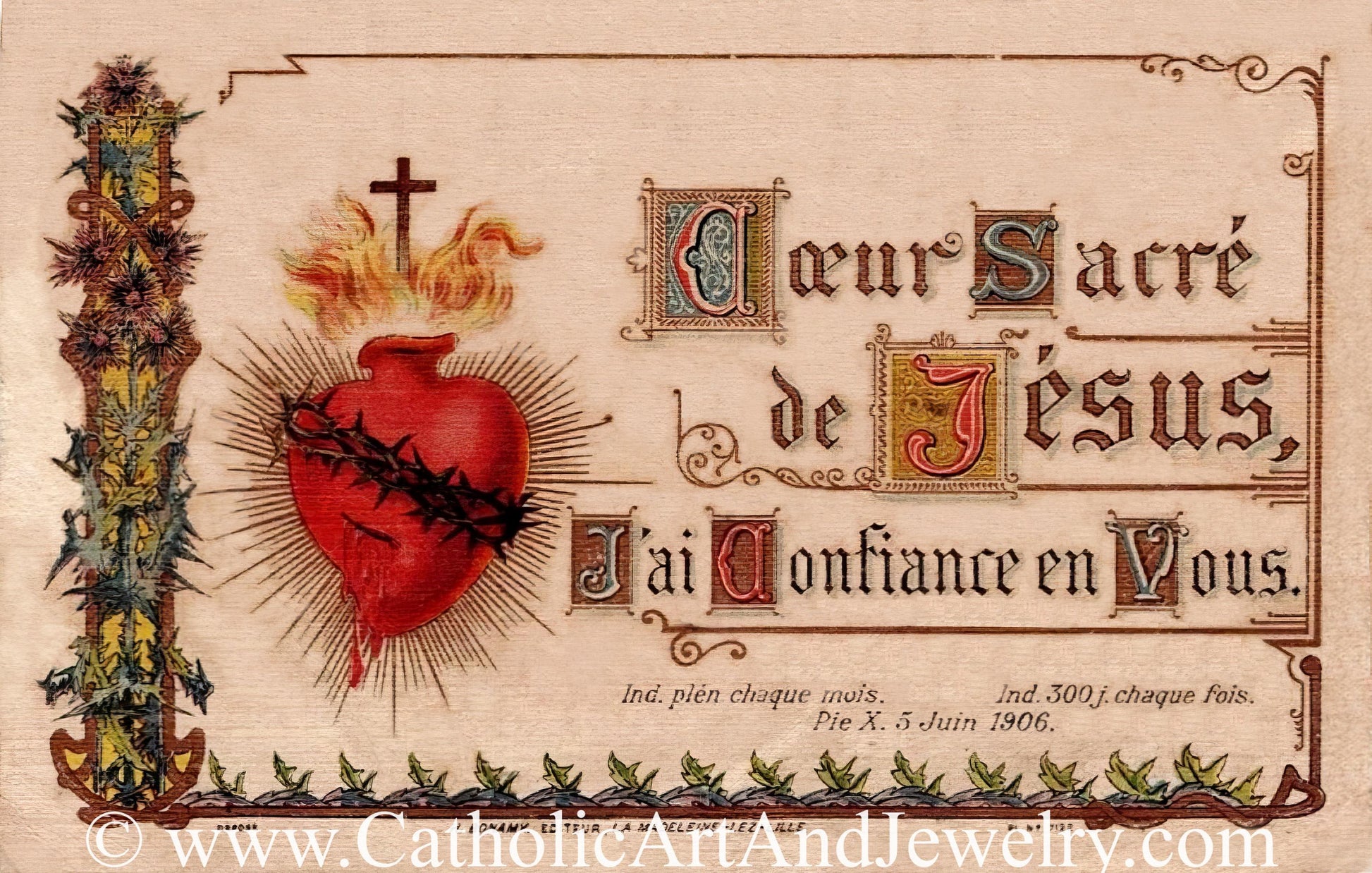 Sacred Heart of Jesus, I Trust in You – based on a Vintage French Holy Card – Catholic Art Print