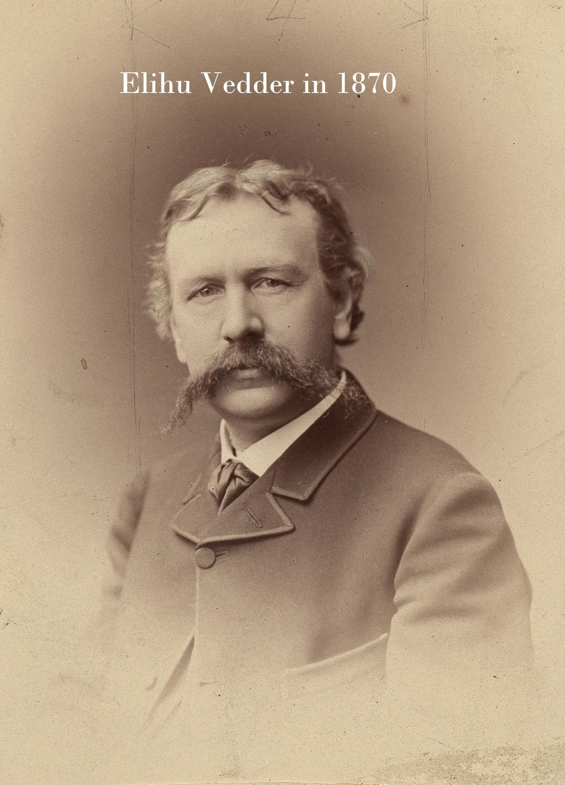 Elihu Vedder (1836–1923) was a prominent American symbolist painter, book illustrator, and poet. Besides his many religious paintings, he also painted many mythical and allegorical paintings. (One we particularly like is called “The Sorrowing Soul between Doubt and Faith.”) He was also famous for his murals, such as the ones at the Library of Congress, and his commissions for Tiffany.
