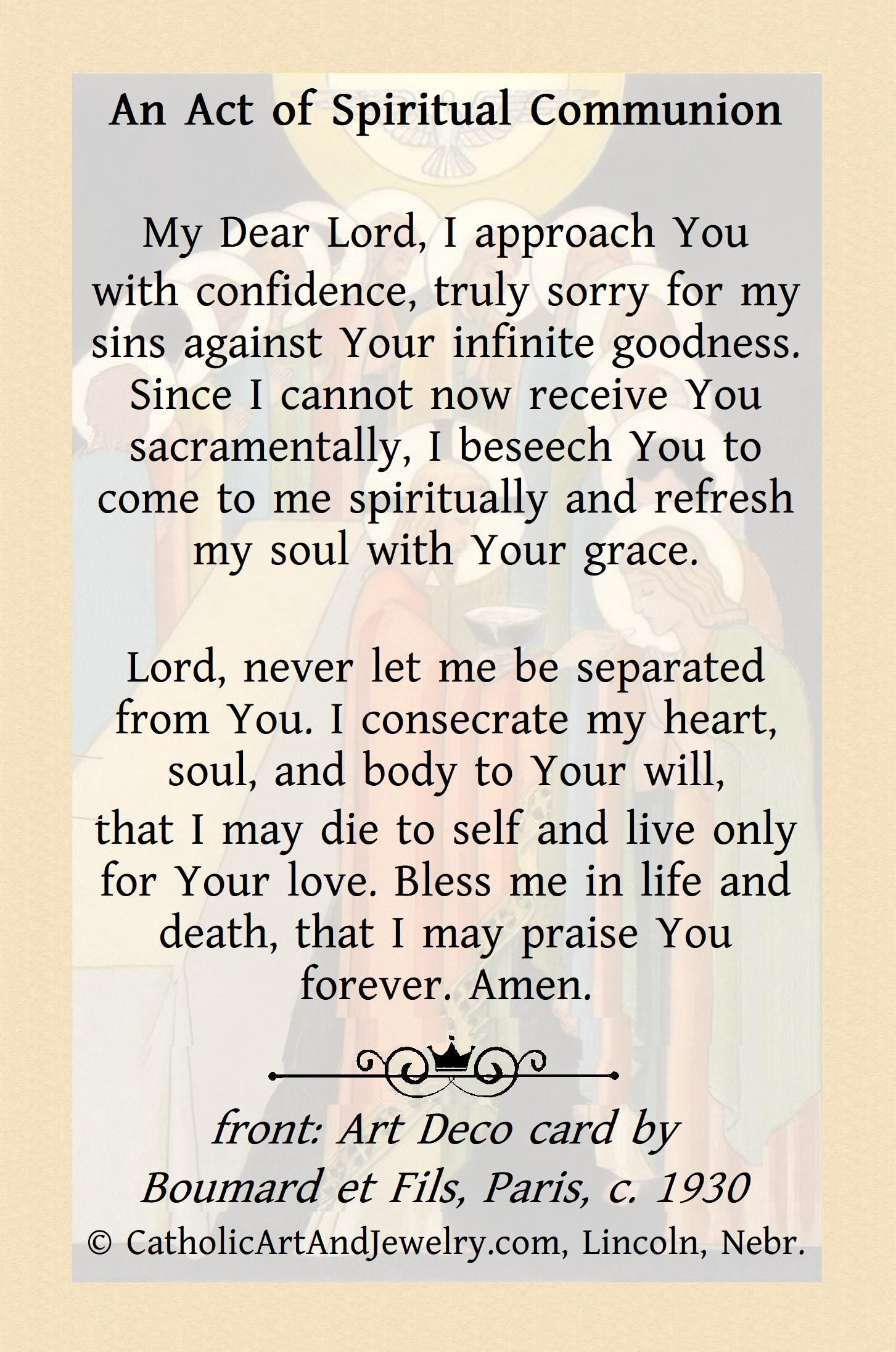 New! The Last Supper Art Deco Holy Card – Spiritual Communion Prayer – pack of 10/100/1000 – Easter Holy Card
