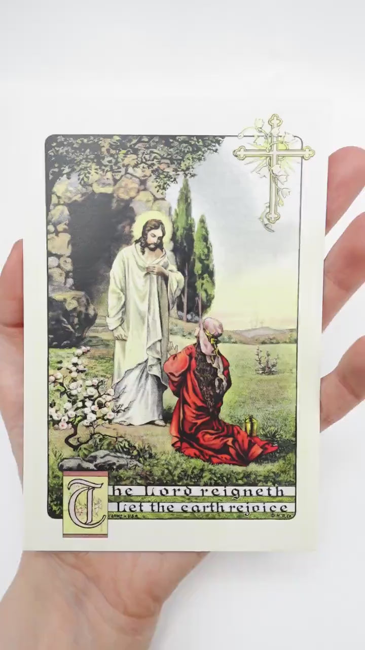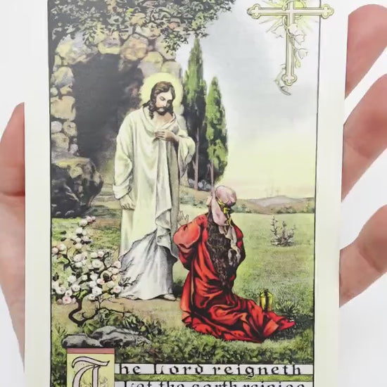 New! The Lord Reigneth Let the Earth Rejoice! 4x6 Postcard – pack of 3, 10, or 100 – based on a Vintage Holy Card – Mary Magdalene