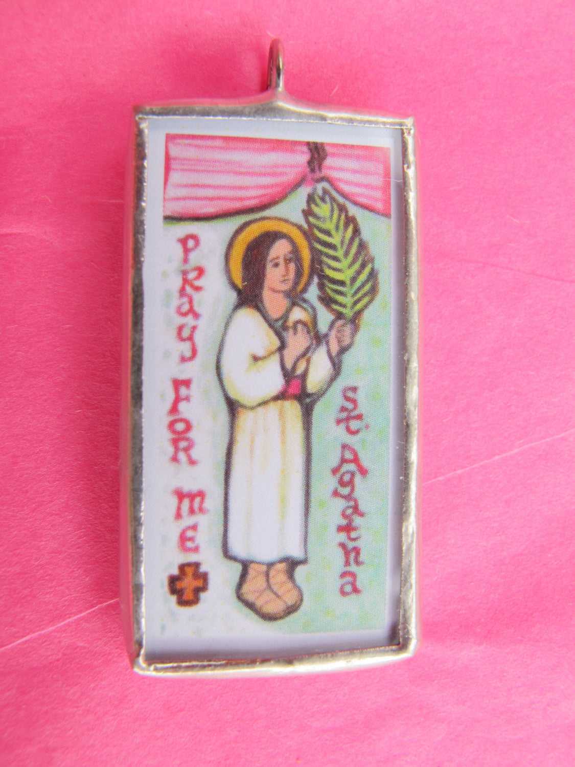 Saint Agatha was a Roman 3rd Century virgin martyr who suffered much for her faith. She was sent to a house of prostitution as a mockery of her virginity but was miraculously preserved. Later, she was cruelly tortured before being put to death. Her last prayer was, " O Lord Jesus Christ, good Master, I give You thanks that You granted me victory over the executioners' tortures. Grant now that I may happily dwell in Your never-ending glory." After her death, it is said that the eruption of Mt Etna was stopped by prayers to St Agatha. She is patron saint of those with breast cancer, firefighters, nurses, jewelers, and others.
