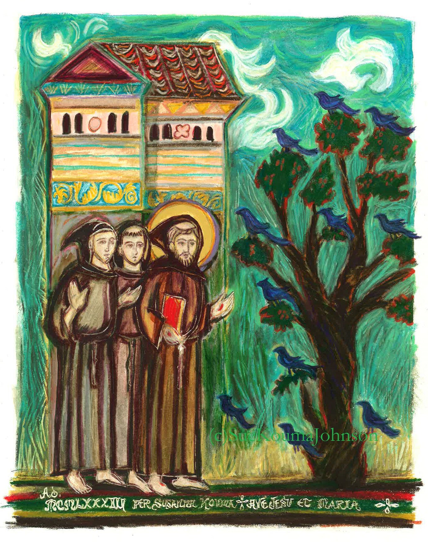 "Saint Francis is a favorite of everyone. Of course, he had an overwhelming love of God's creation, which I also share. I love to feed the birds and see God's Hand in every detail of this world's beauty and order."(from artist Sue Kouma Johnson)