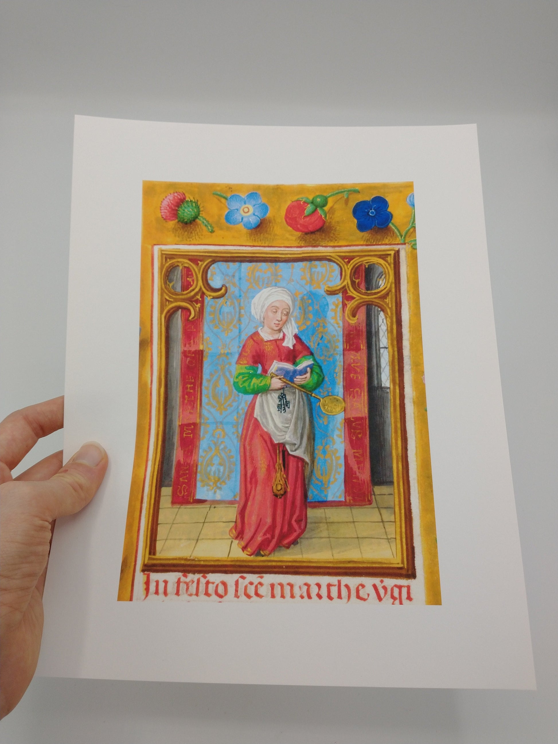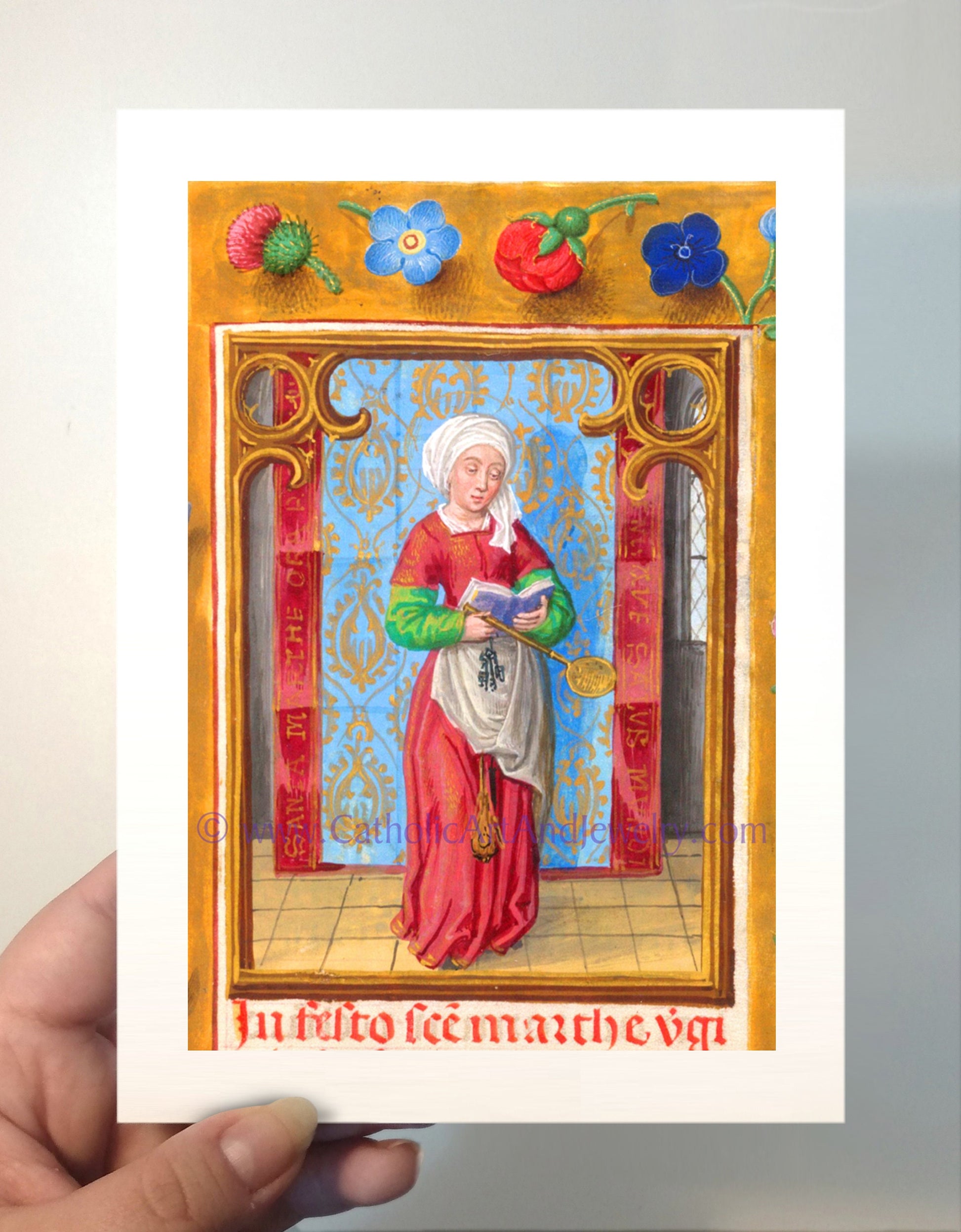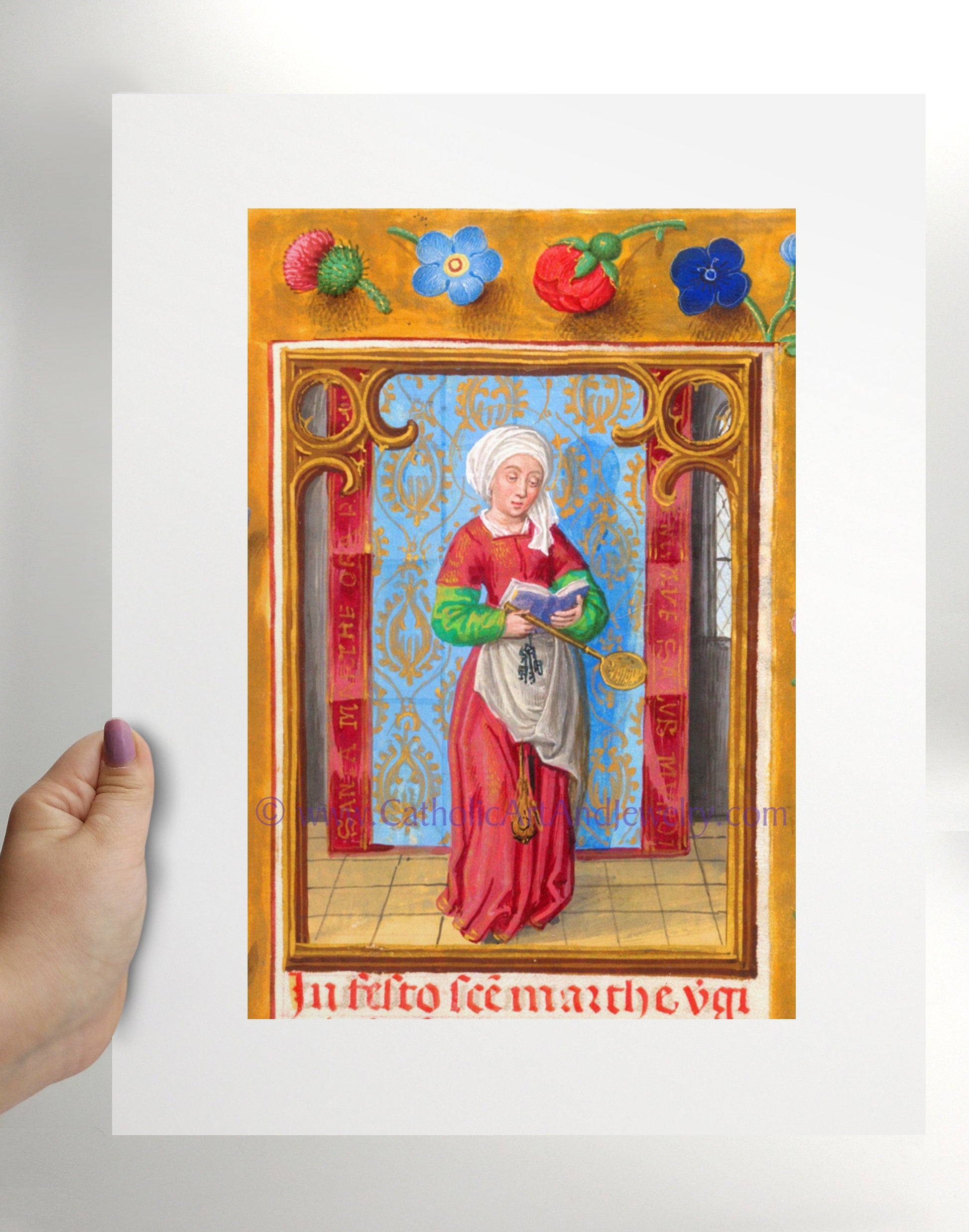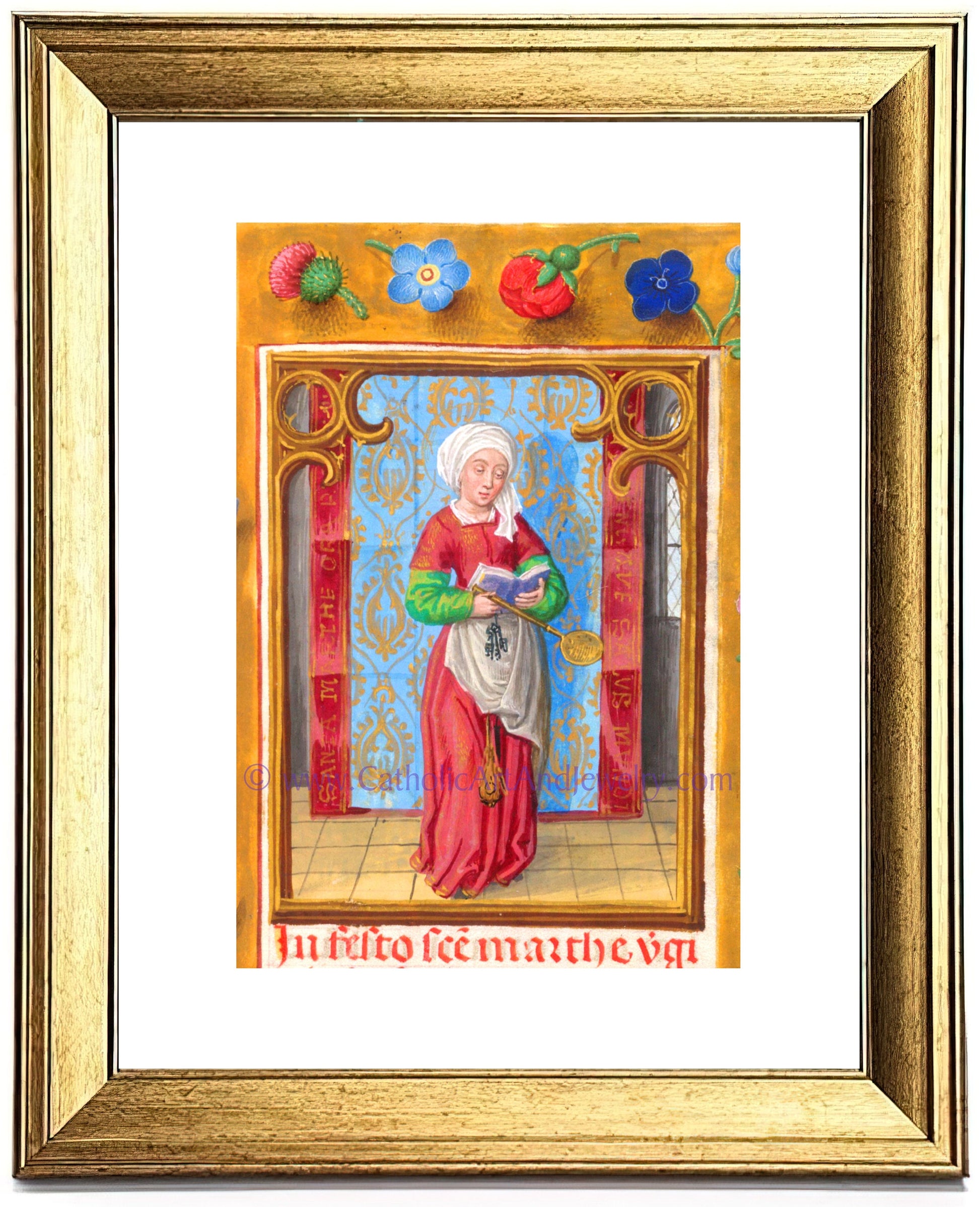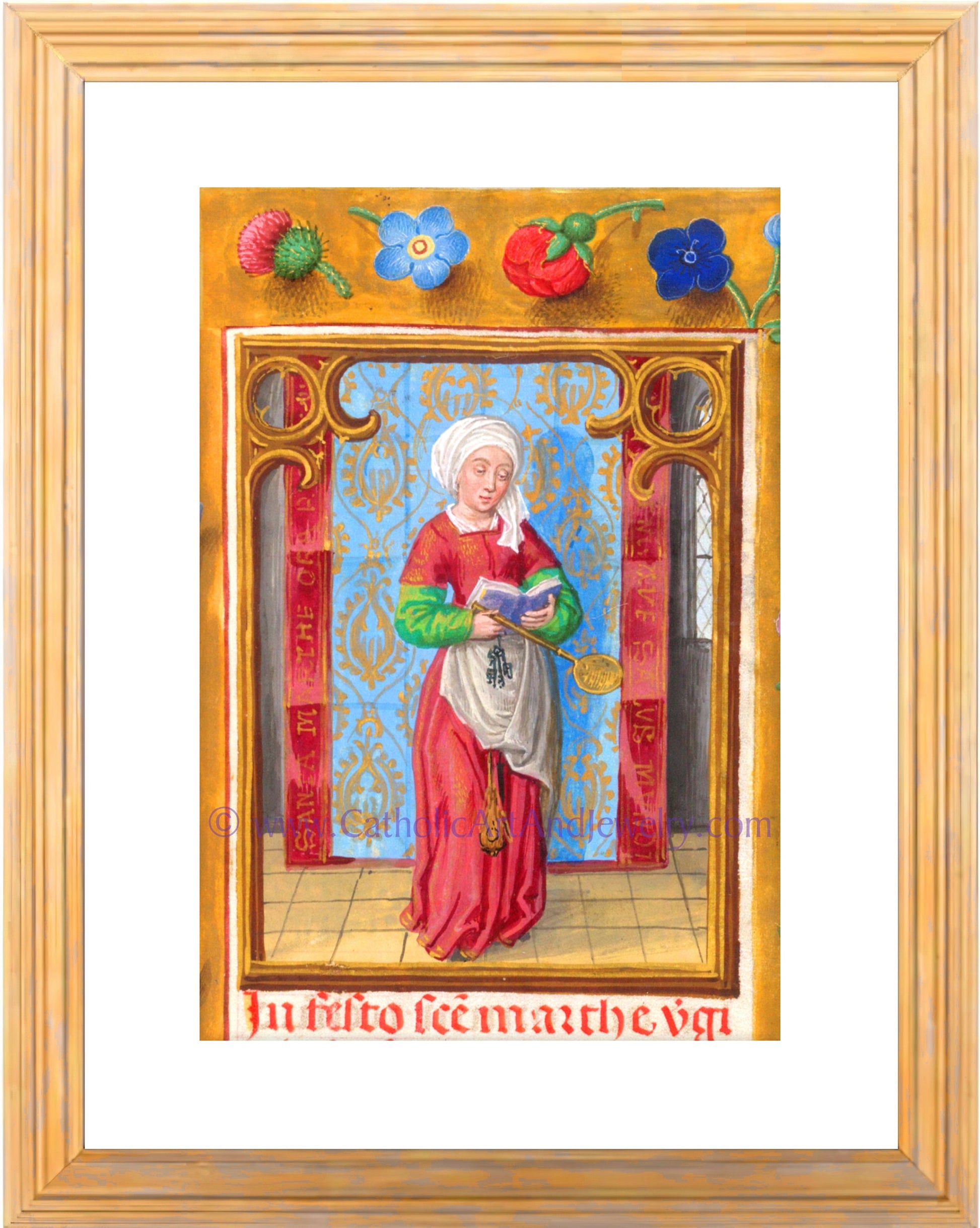Saint Martha of Bethany – Patron Saint of Housewives – from an Illuminated Manuscript – Catholic Art Print – Catholic Gift for Her