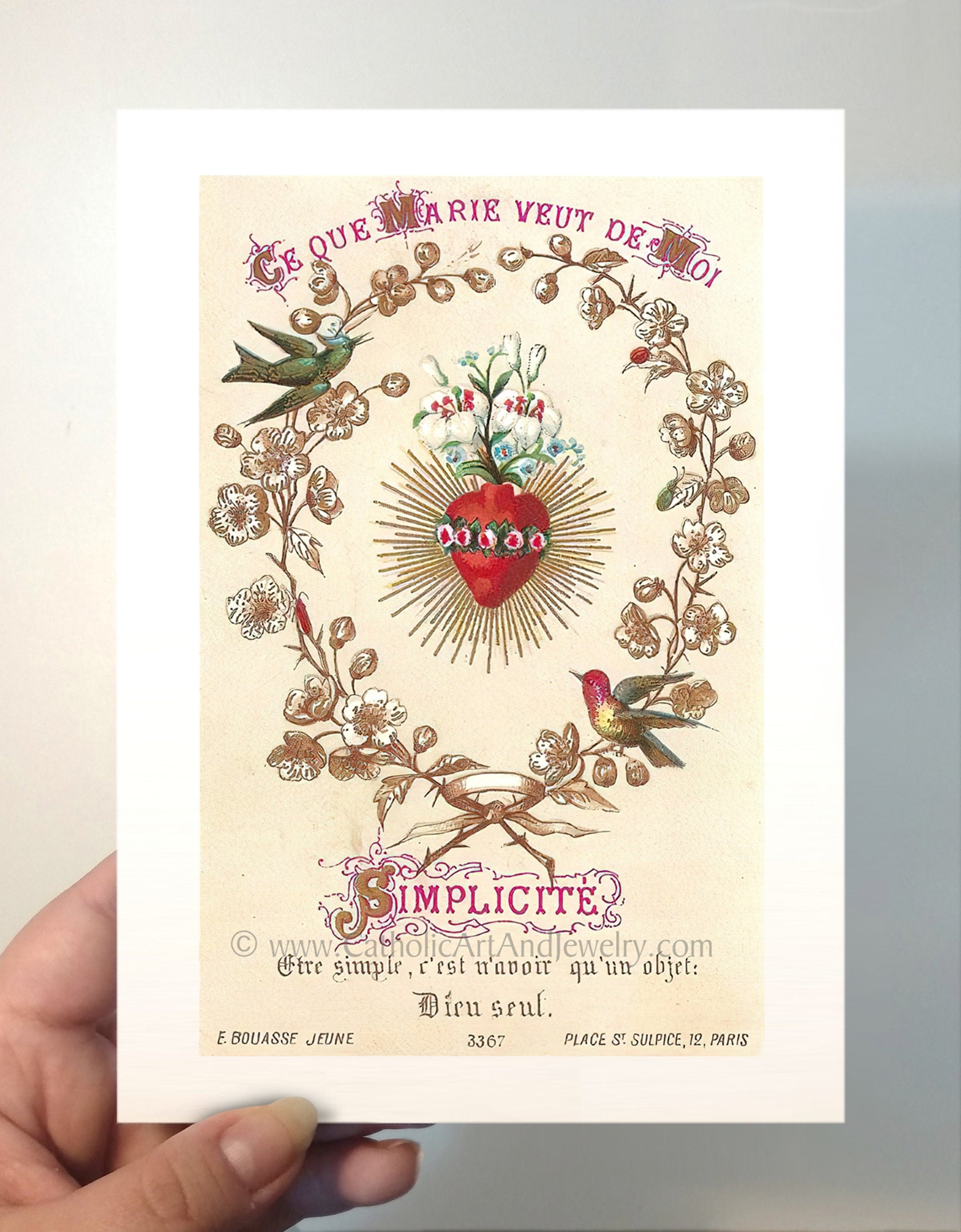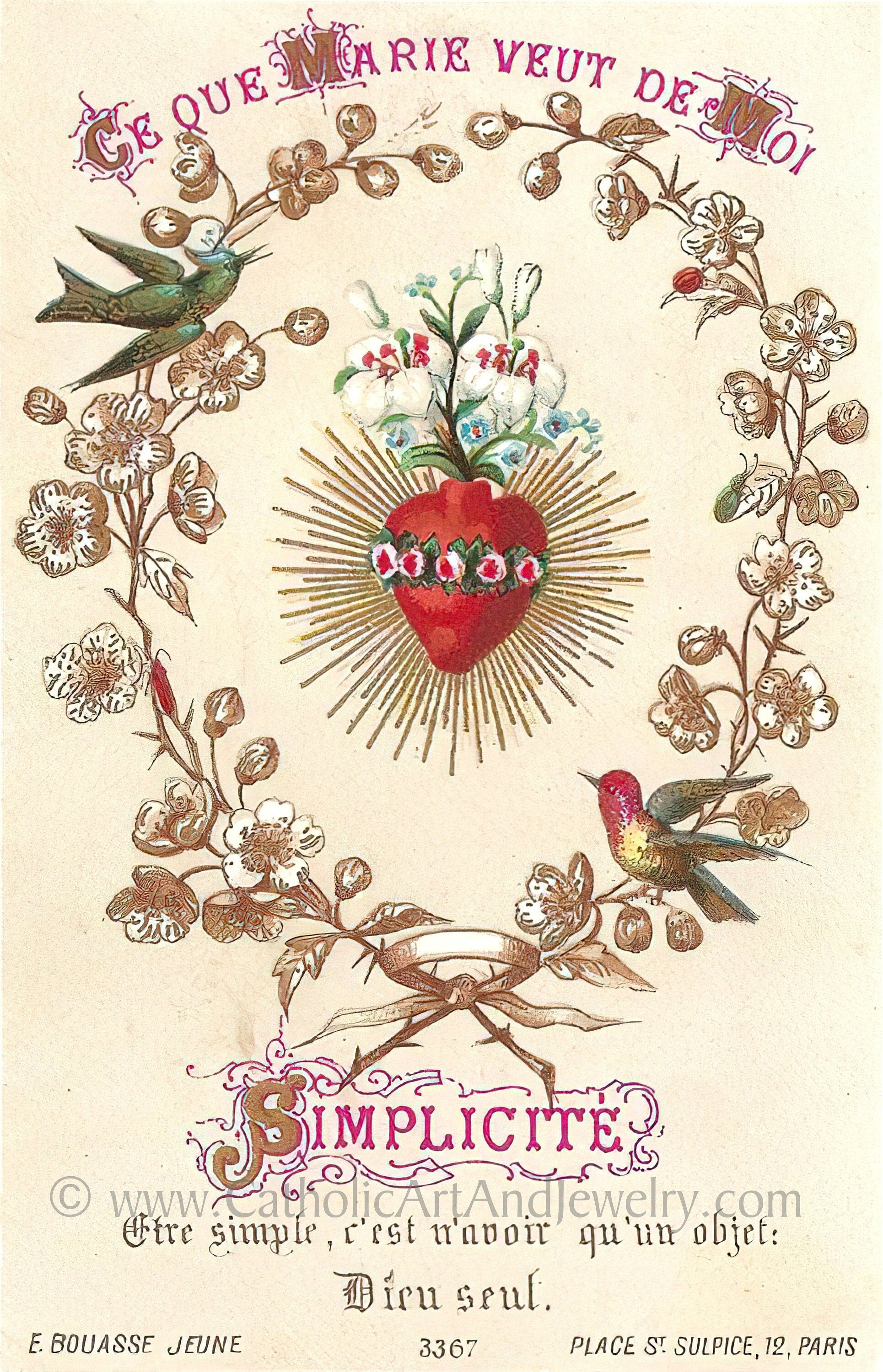 Bouasse Jeune is one of our favorite vintage publishers of holy cards. They did several virtues in this series, of which we offer three. Simplicity, Candor, and Perseverance. They are all personal favorites, especially Simplicity.