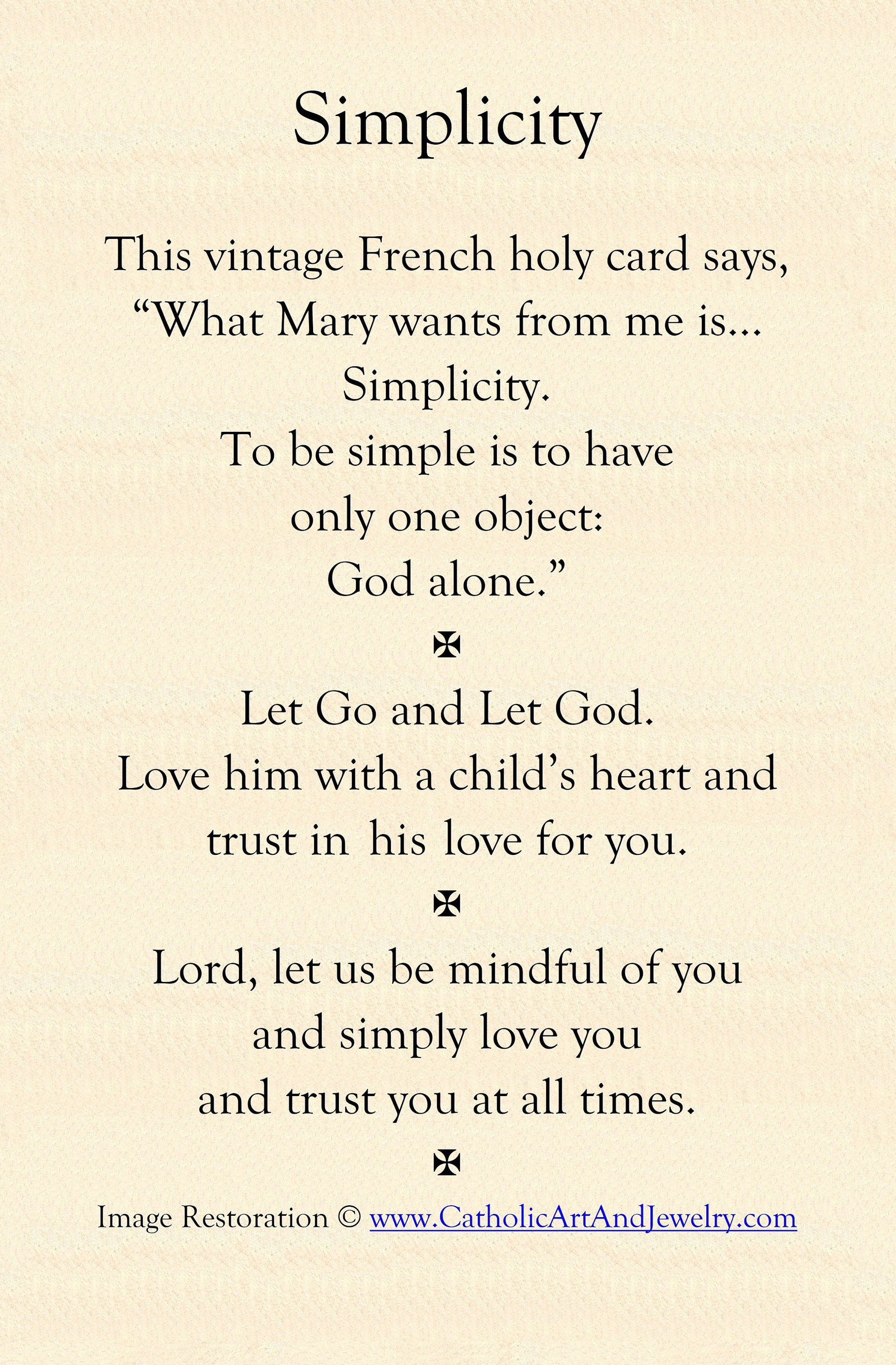 Simplicity Holy Card – pack of 10/100/1000 – Restored Vintage Holy Card