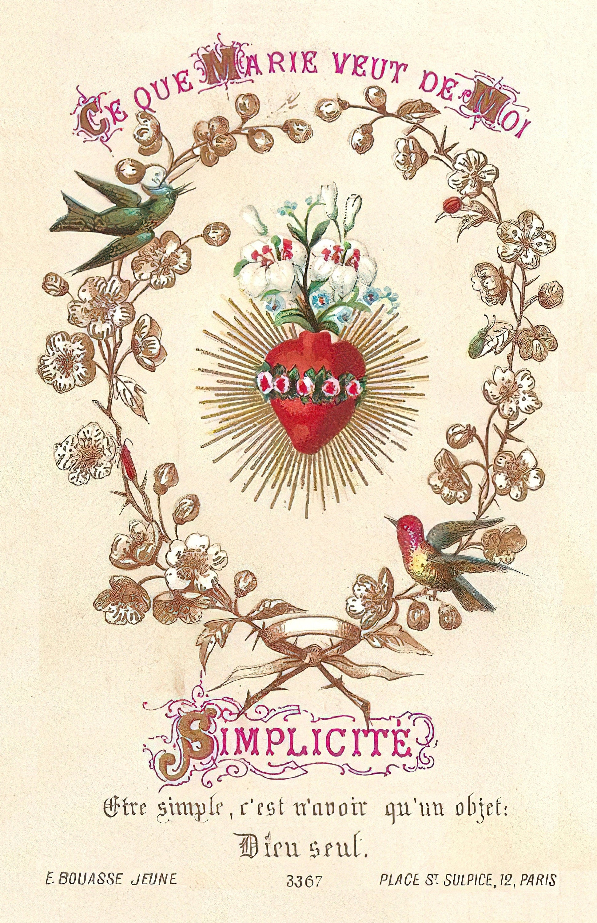 This beautiful card was made by one of our favorite vintage holy card companies, Bouasse-Jeune, who worked from about 1857 to 1920.