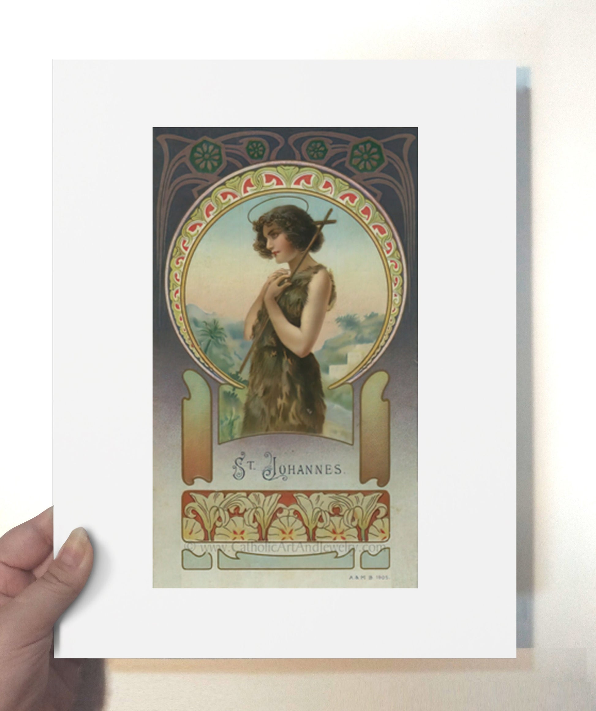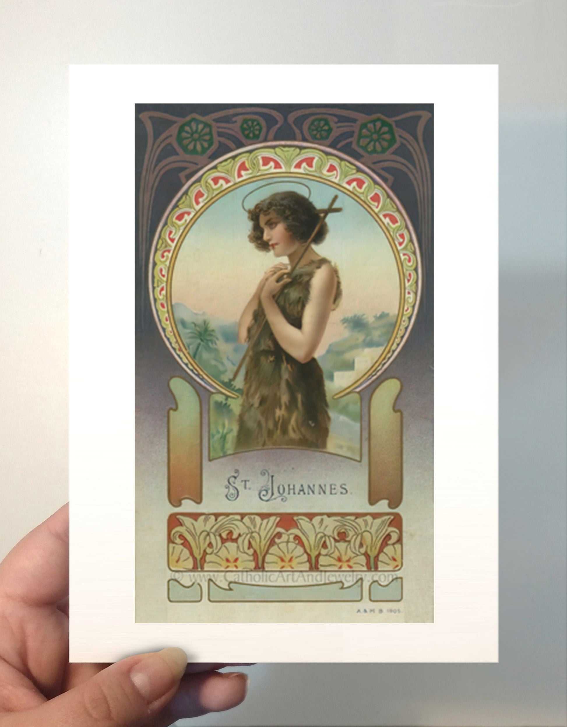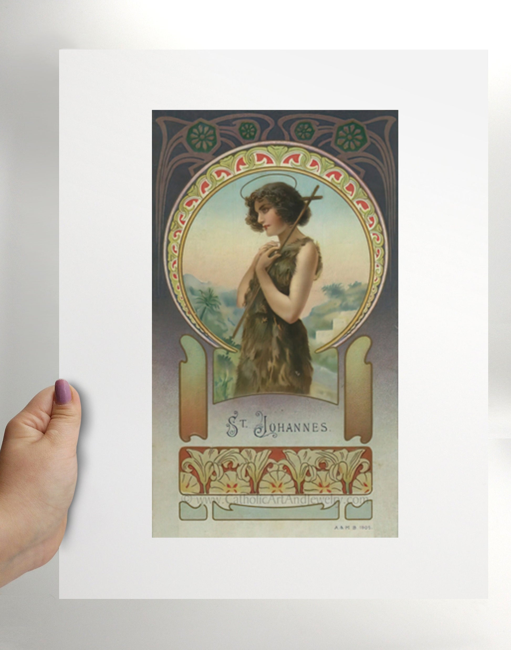 St. John the Baptist – Art Nouveau – 3 Sizes – based on a Vintage French Holy Card – Catholic Art Print