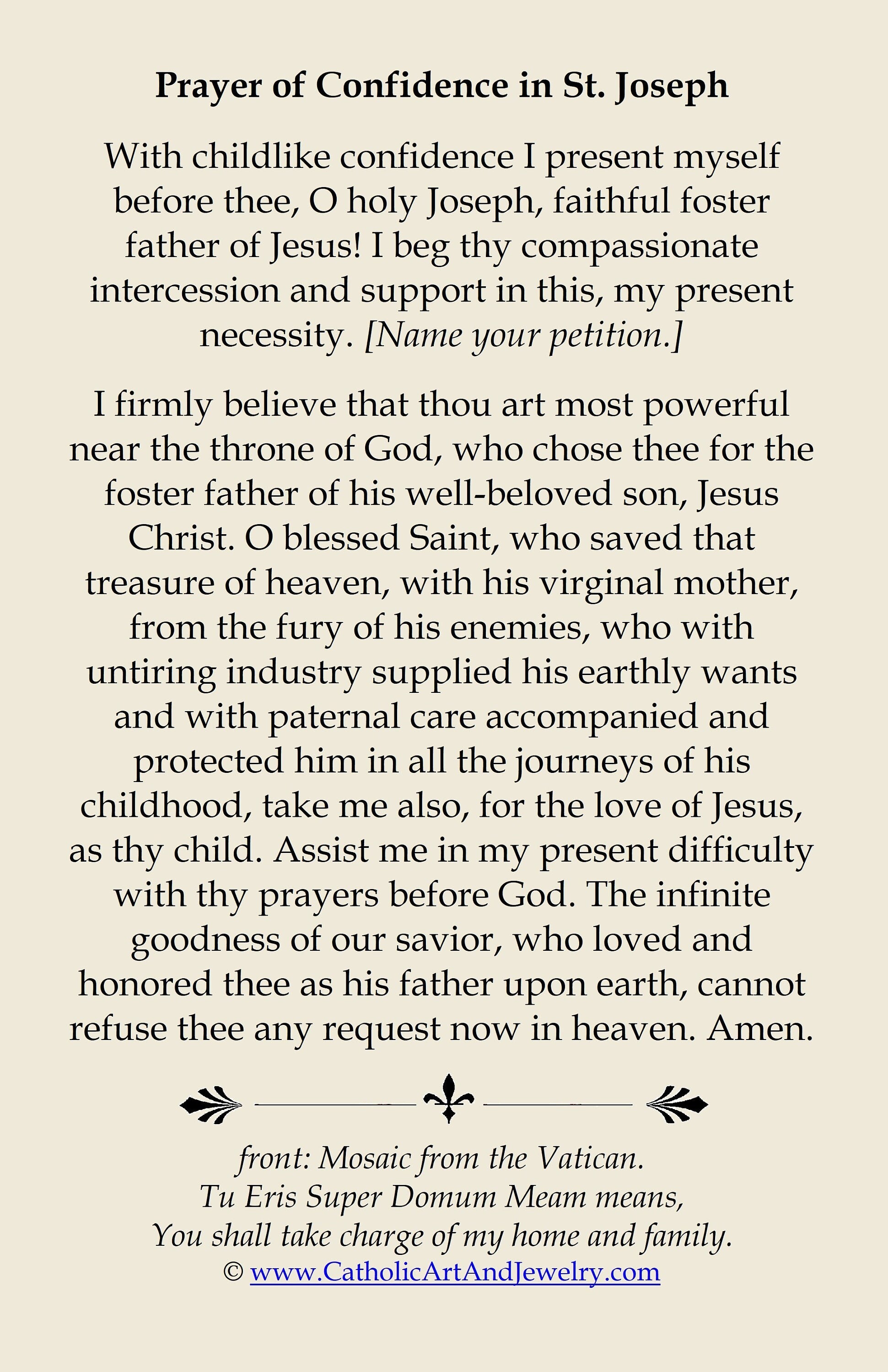 This holy card is based on our most popular image of the Saint, and includes a traditional prayer on the bask asking for his fatherly protection of us.