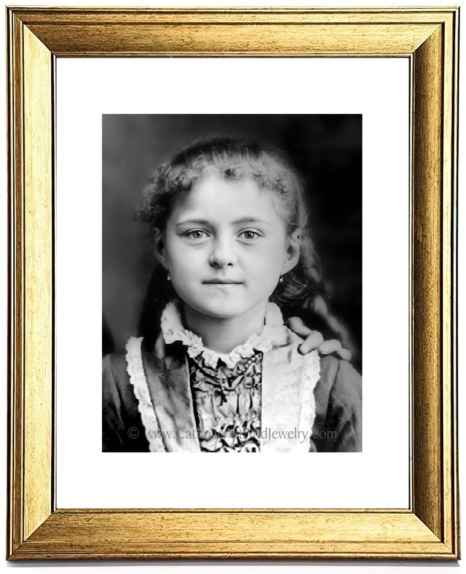 We have restored this photo to a vividness that wouldn't have been possible until a few years ago. As with all our restorations, we hope this brings you closer to the Saint, lets you see her as a living girl, a person just like us, and ultimately, we hope this helps you draw nearer to Jesus. This is our mission and our joy, to bring you beautiful Catholic art that enhances your faith.