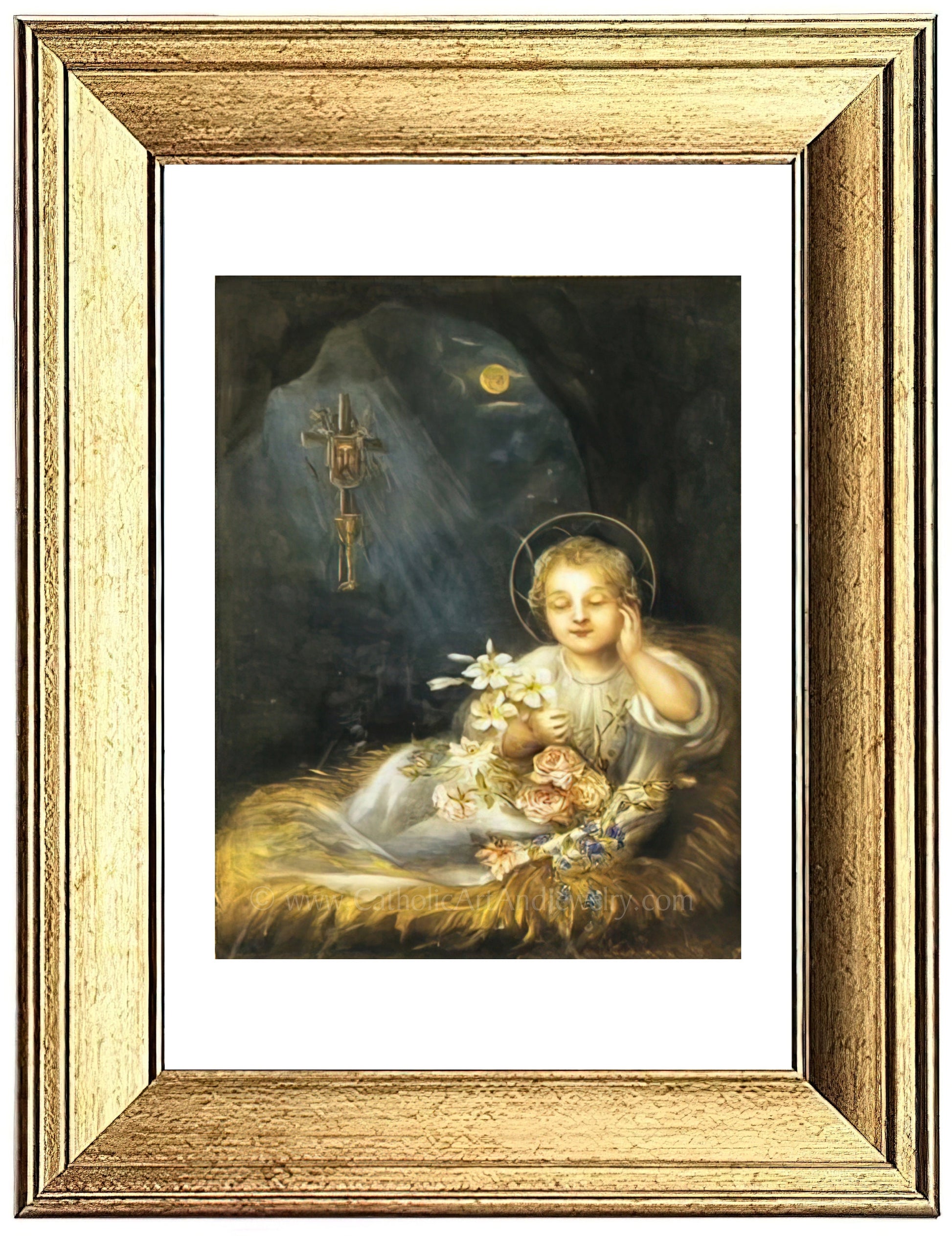"However, the night has come. The moon sends out its silvery rays, and the gentle Child falls asleep.... His little hand does not let go the flowers that delighted Him during the day, and His Heart continues dreaming about the happiness of His dear spouse.