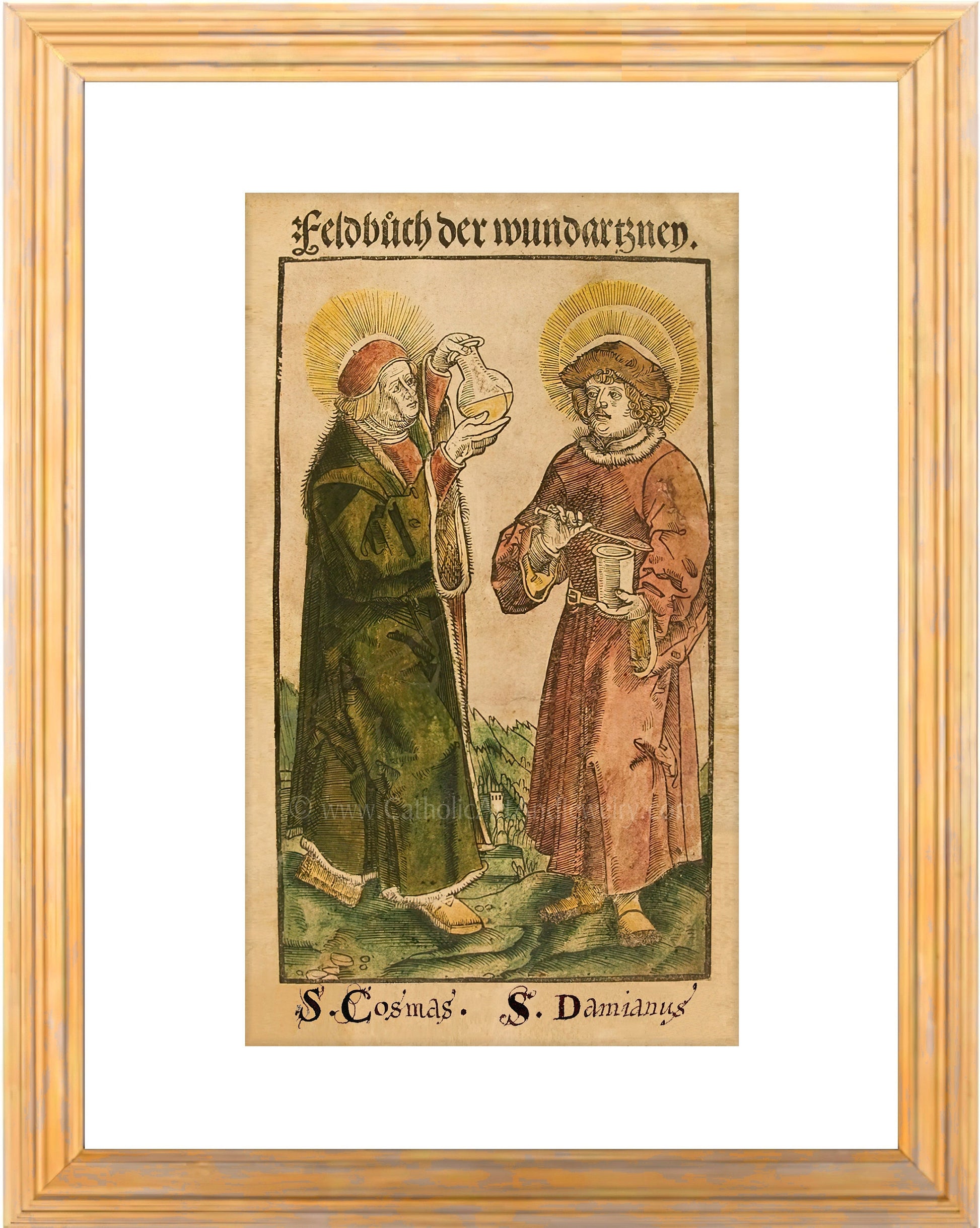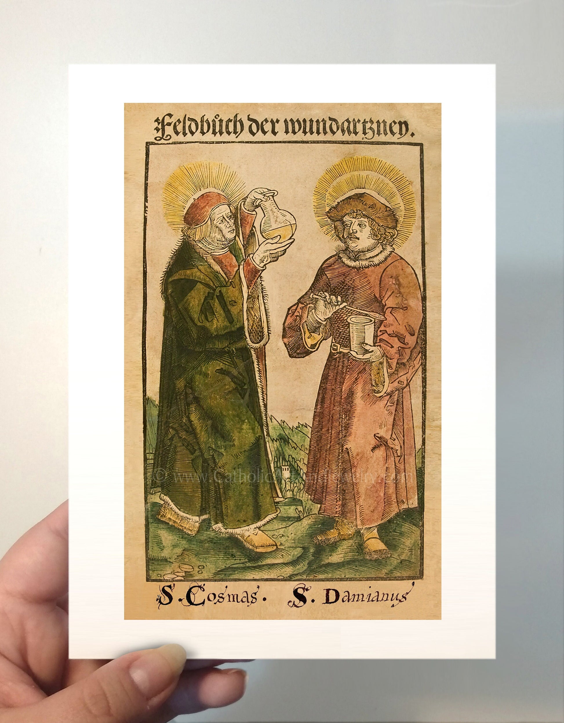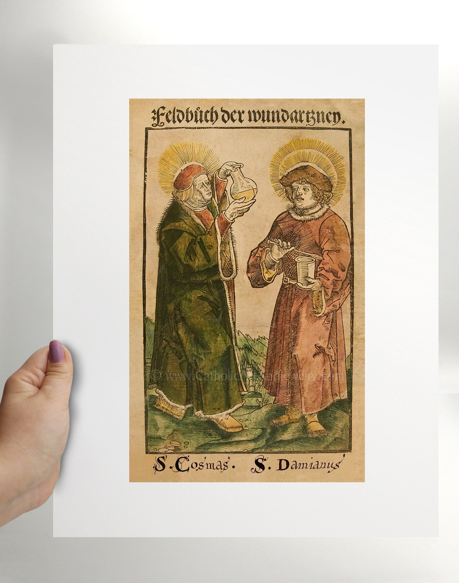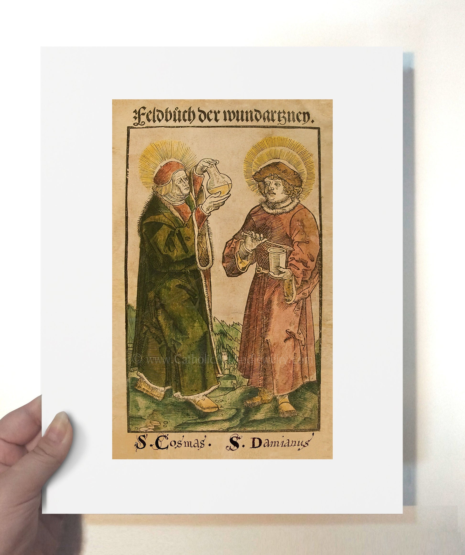 Sts Cosmas and Damian –3 sizes – by Johann Ulrich Wechtlin – Woodcut – Catholic Art Print – Archival Quality