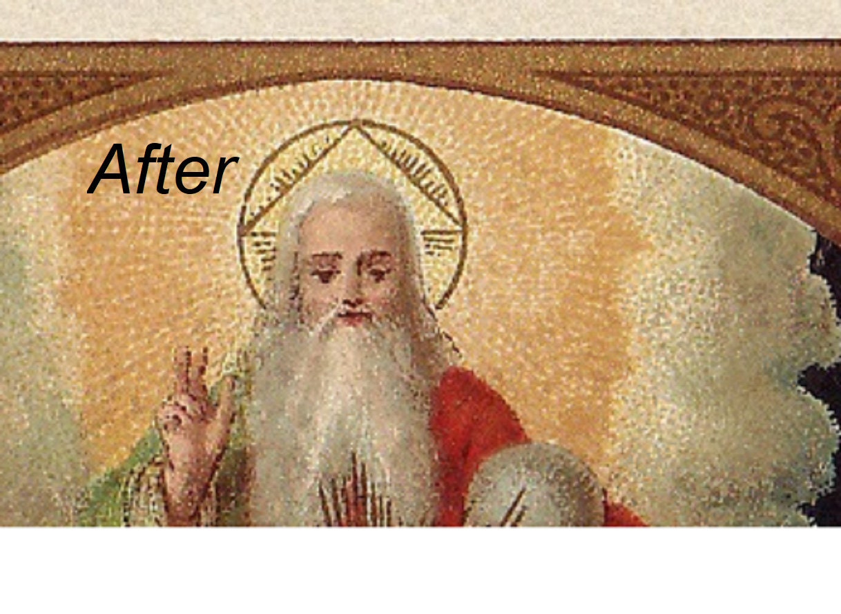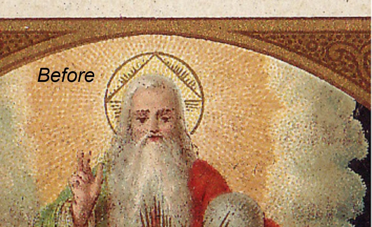 The print is really sharp, and the colors are rich. The holy card is long out of copyright and is now in the public domain. We print it on special art paper with archival quality pgiments, rated to last for many generations without fading when kept out of the direct sun.
